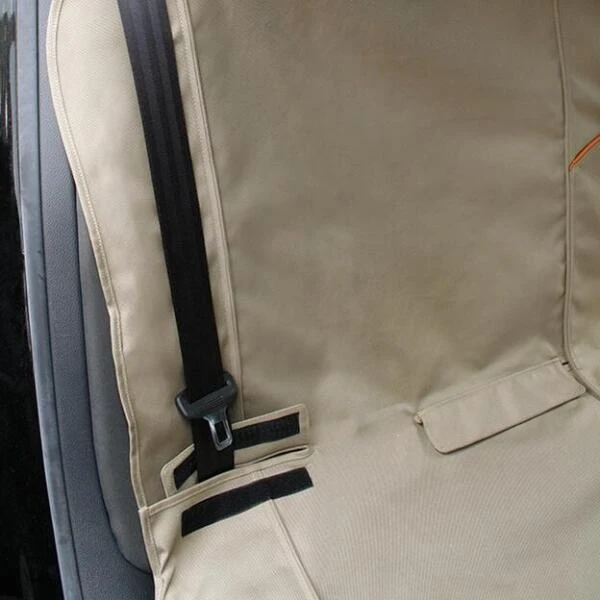 Deze waterafstotende hoes van Kurgo heeft dubbel gestikte naden die zorgen voor extra stevigheid. De zeven bevestigingspunten houden de hoes op zijn plaats zodat ze niet rondschuift op de achterbank. De klittenbandopeningen maken het gebruik van veiligheidsgordels dan weer mogelijk, ook het plaatsen van kinderzitjes en vergrendelingen voor kinderzitjes.