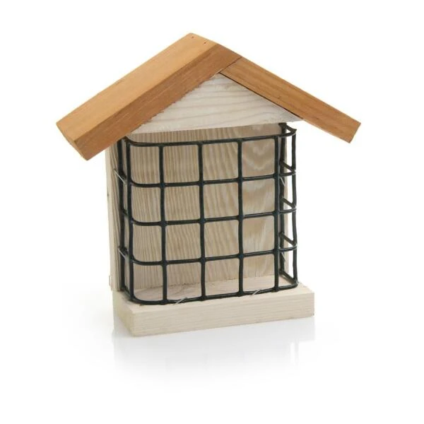 Door het voorziene houten dak, zal de vetblok beschermd zijn tegen de regen en langer vers blijven. Dit voederhuis wordt willekeurig geleverd in een witte of honingbruine kleur.