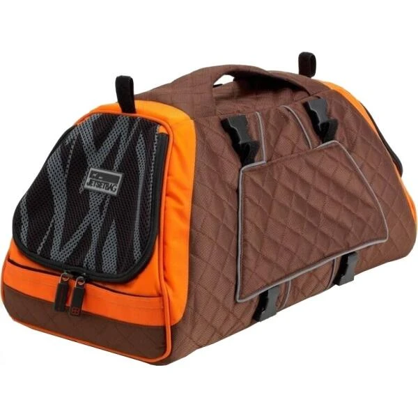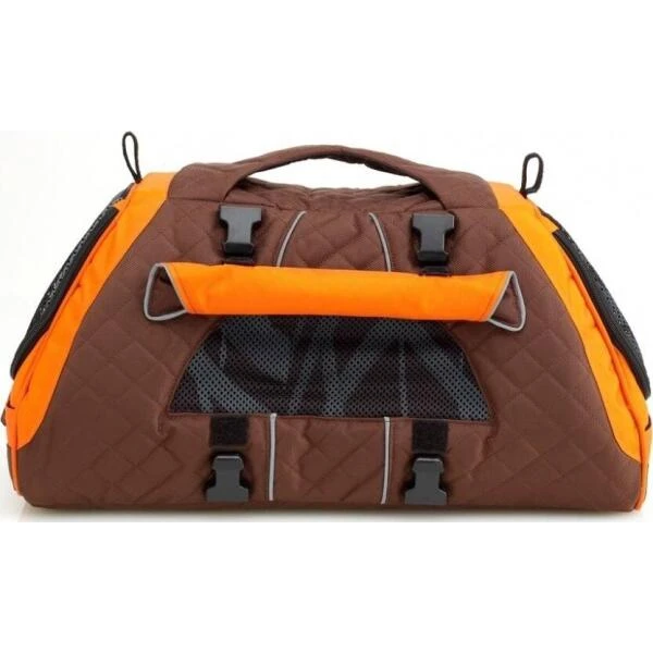 Aan de voor- en achterzijde is een deur met rits voor makkelijke toegang en aan beide zijkanten zijn gaasramen die kunnen dicht gemaakt worden. Binnenin ligt een zacht kussen zodat het dier comfortabel kan getransporteerd worden.