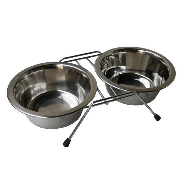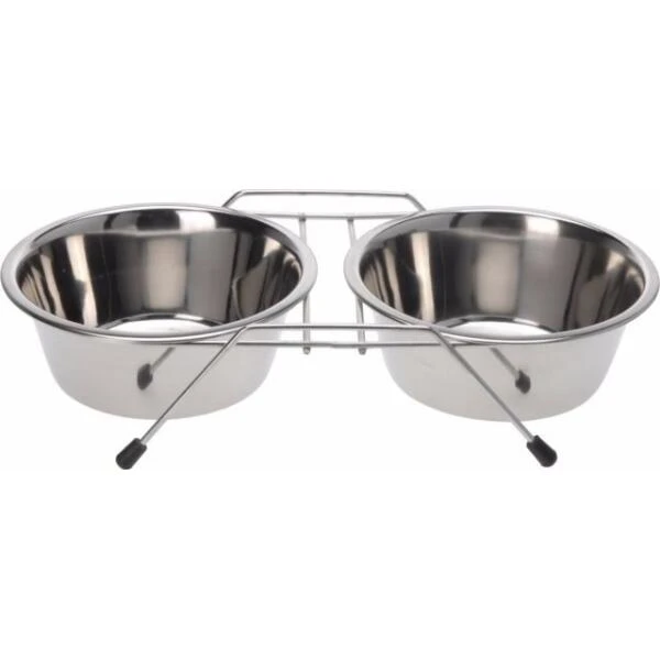 Een drinkbak en een eetbak samen in één handig rekje. Ideaal voor hond of kat.