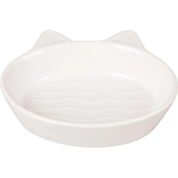 Het eetbakje uit keramiek is voorzien van twee kattenoortjes waardoor het schaaltje op een kattenhoofdje lijkt.