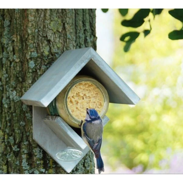 Pindakaas is een lekker mengsel van pinda’s en goede onverzadigde vetten. Vogels zijn dan ook verzot op pindakaas! Met dit stijlvol houten pindakaashuis lok je heel wat vogels naar jouw tuin.