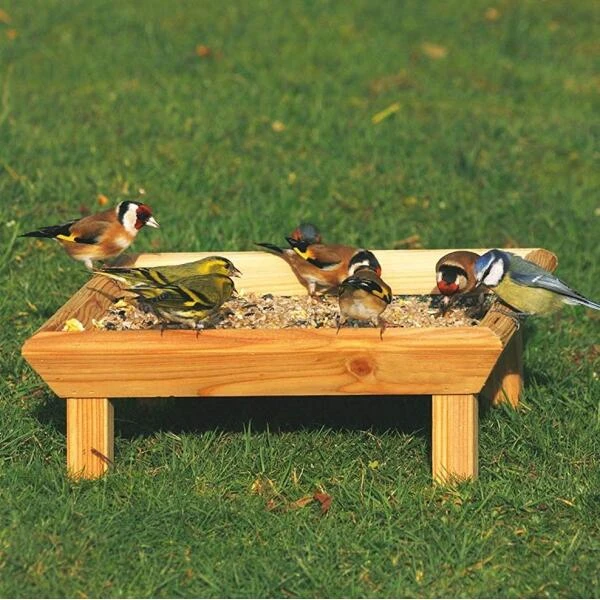 Bepaalde vogels fourageren het liefst op de grond waar ze op zoek gaan naar insecten, zaden, noten,… Deze grondvoedertafel is speciaal ontworpen voor deze vogels waaronder het roodborstje, heggemus, merel en lijster,… Op die manier hoef je het wintervoer niet op de grond te strooien maar kan je het aanbieden op de voedertafel. Dit houdt de ondergrond onkruidvrij en is de kans kleiner dat je ongedierte aantrekt door het achtergebleven voer.
