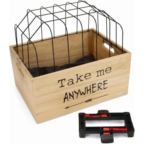 Op zoek naar een hippe fietsmand voor je hond voor achterop de fiets? Dan heb jij deze gevonden! Deze hondenfietsmand is een toffe houten krat en voorzien van een lekker zacht kussentje voor extra comfort. Heb je een beweeglijk hondje, dan is een mand achterop vaak fijner dan voorop, omdat er dan niet aan het stuur wordt getrokken.