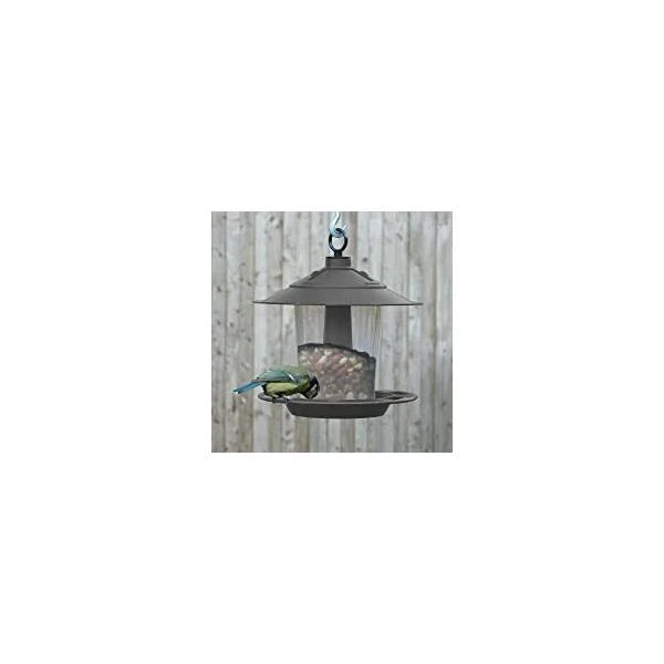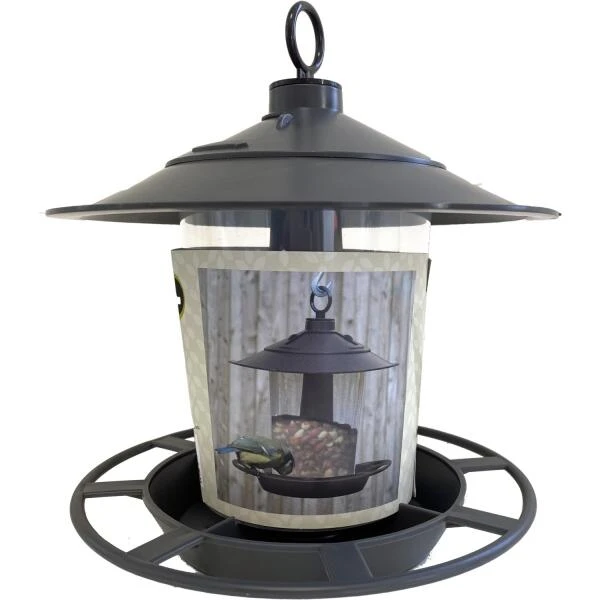 De vogels kunnen vanaf de voorziene zitrand de zaden uit het opvangbakje oppikken. De voedersilo is makkelijk aan te vullen door de opening van het dak. Draai hiervoor het dak naar links of naar rechts.