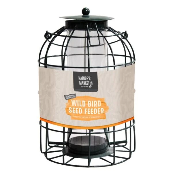 Deze voedersilo is omgeven door een mooi gaasraster waardoor deze enkel toegankelijk is voor de kleinere tuinvogels zoals meesjes, mussen, roodborstjes,… Het raster rond de voedersilo vormt een belemmering voor grotere vogels zoals eksters, kraaien, duiven,… of eekhoorns die de kleine vogelsoorten verjagen of al het eten opeten.